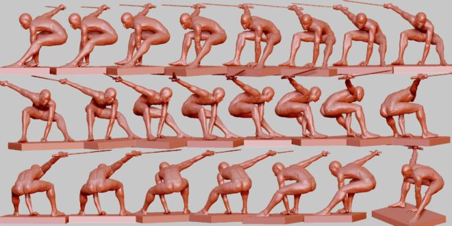 「剣で斬る」や「体育座り」などの細かいポーズが用意されており、色々な角度からそのポーズを確認することができます。