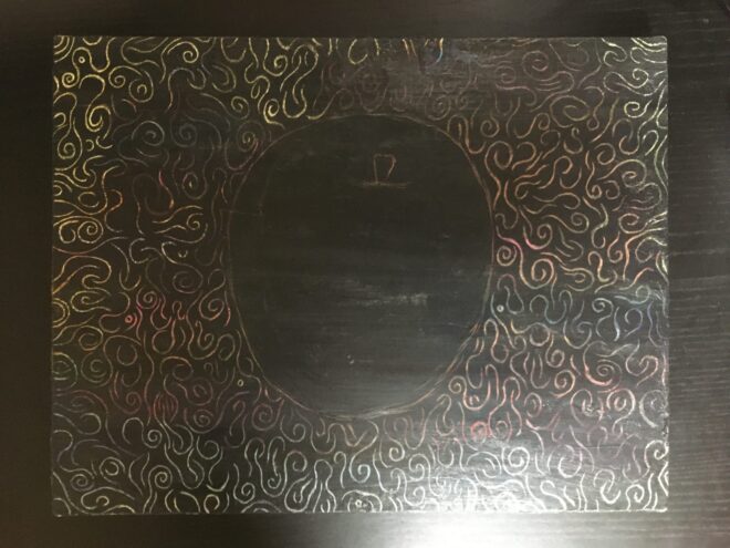 模様は削って描いているので、実は主役のりんごよりも制作時間がかかりました(笑)