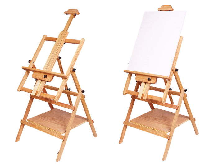 木製や金属製のイーゼルがあり、持ち運びに便利な折りたたみができるモデルもあります。