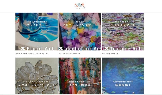フルイドアートやアルコールインクアートなど人気の高い制作方法にも挑戦できます。