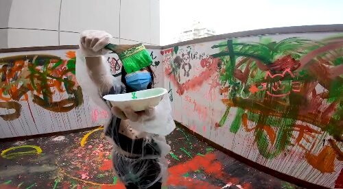 壁に自由にペンキをぶちまけて落書きする「FREE ART WALL」は爽快感抜群の新体験になることでしょう。