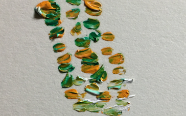 ナイフの先端に絵の具を付けて画面に押しつける塗り方です。