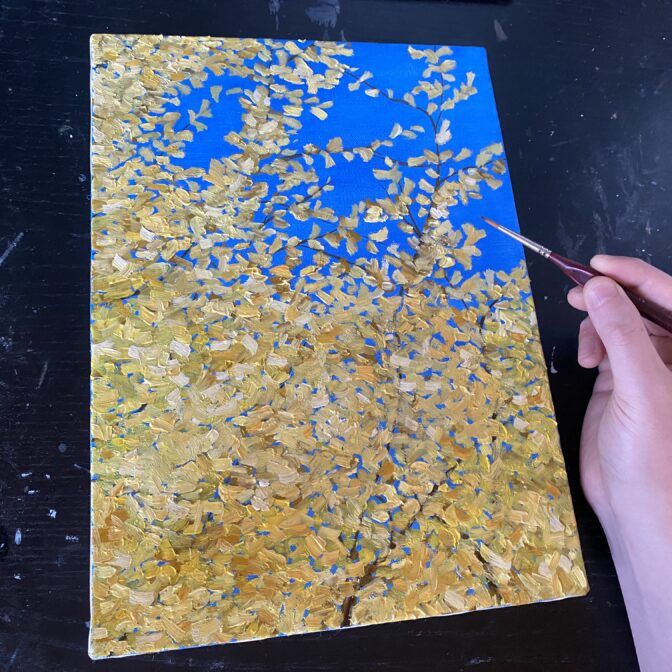 風景画油絵 イチョウ 通常価格 3500 円 (税込) 購入はこちら 説明 イチョウを描いた油絵です。 色鮮やかな黄色と青空のコントラストがきれいな秋らしい一枚になりました。 ※商品画像はお客様のご閲覧の環境によって、色味など実物と若干の違いが生じます。 ・画材:油絵の具 ・キャンバスサイズ:F4号(333mm×242mm) ・額装なし ――――――――――――――――――――――――――――― ・oil painting ・Canvas size 13.1in×9.5in ・No Framed 関連商品 Lake minnewanka 5500 円 (税込) Stairs 5500 円 (税込) 紅葉 2500 円 (税込) sold out 秋景 2500 円 (税込) この商品が紹介された特集 黄色の絵画特集 コメントは受け付けていません。