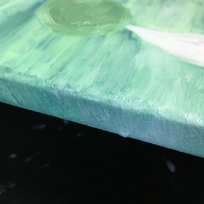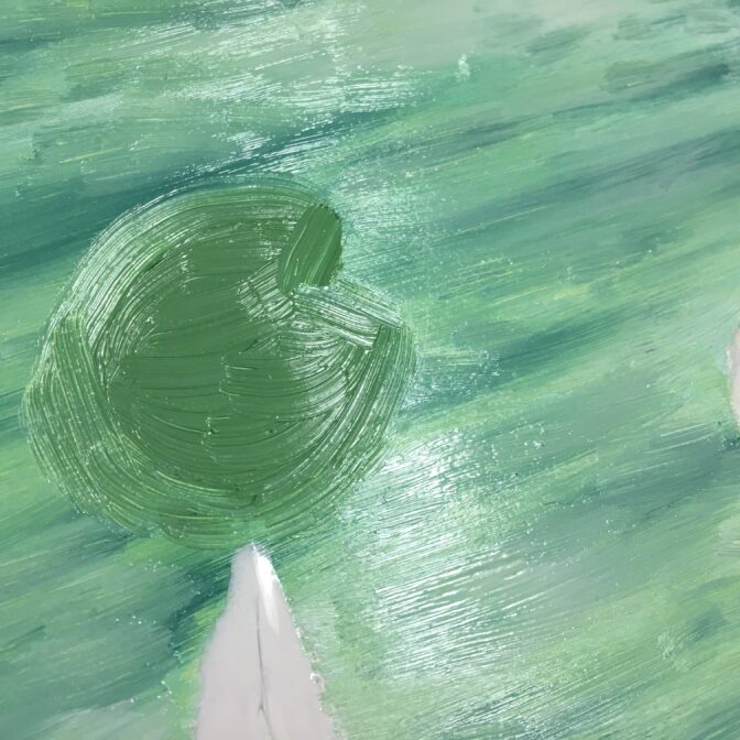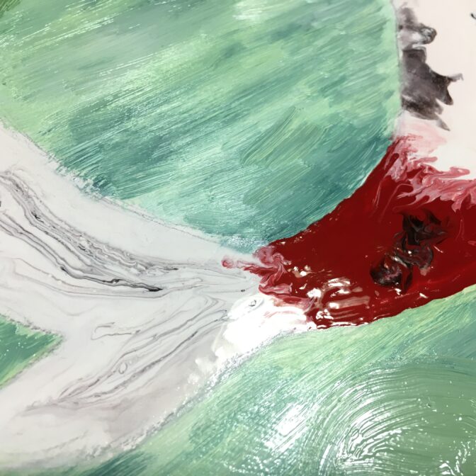 絵の具を垂らし込むように描いたので、ポーリングアートのような仕上がりになっています。