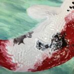 六角形のキャンバスに錦鯉をテーマにした油絵を描きました。