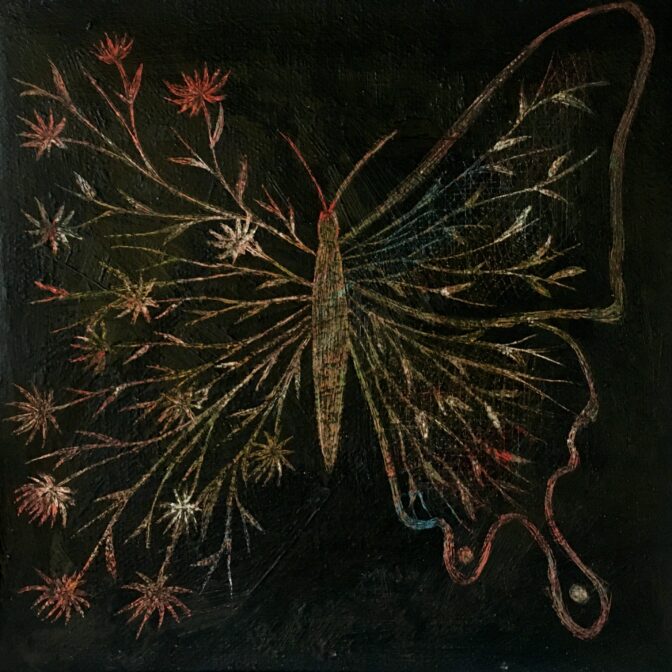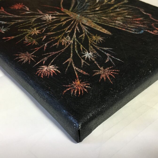 蝶をモチーフした削り絵を小さなキャンバスに描きました。