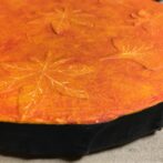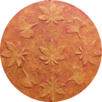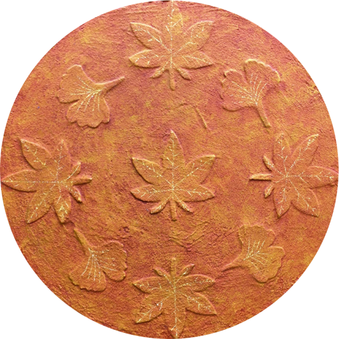 直径15cmの小さな円形キャンバスに鉄器をイメージした質感と和風の柄を仕立てたインテリアアートです。