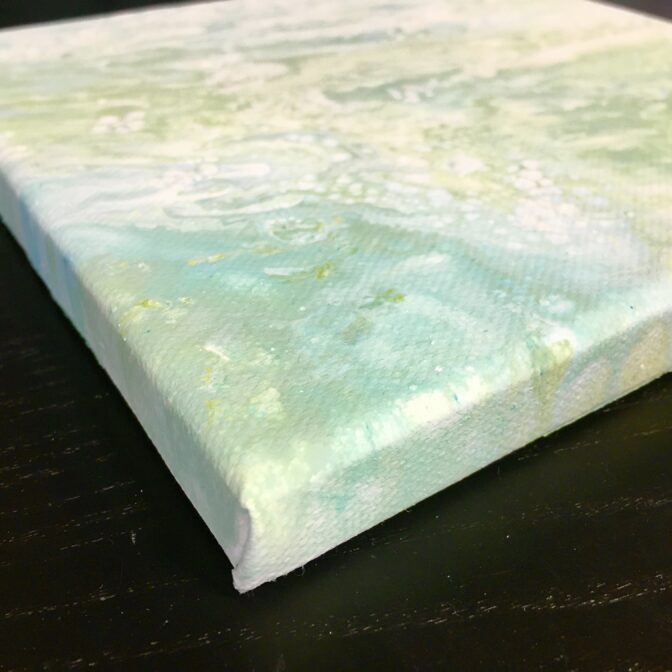 小さなキャンバスに親和性をイメージしたフルイドアートを製作しました。