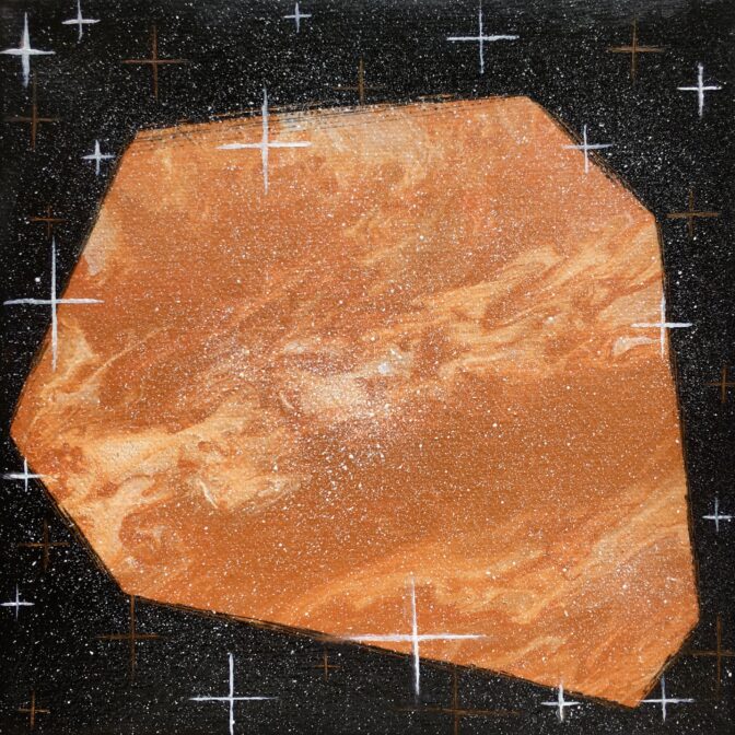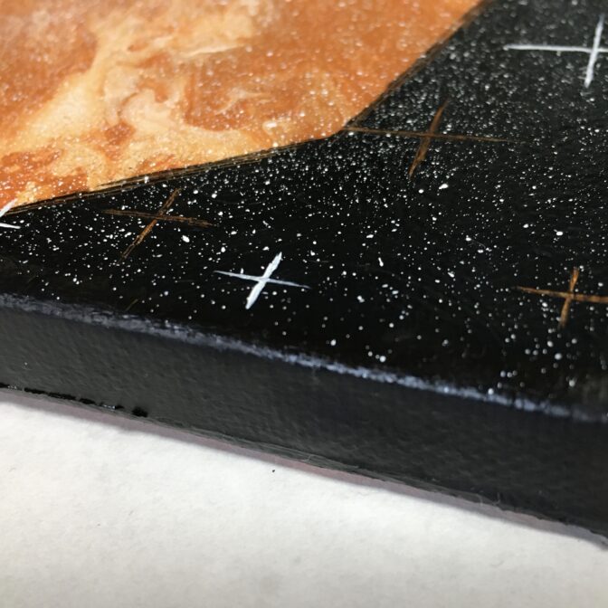 小さなキャンバスに惑星をイメージしたフルイドアートを製作しました。