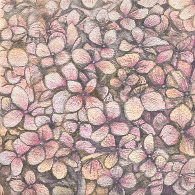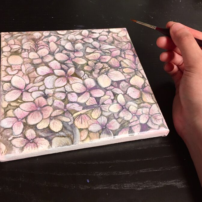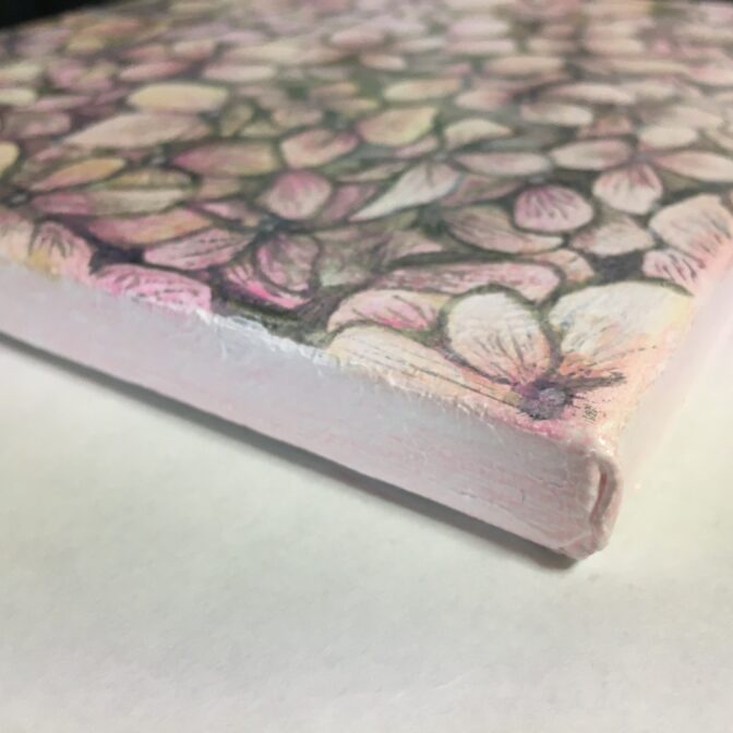 ピンク色の紫陽花を小さなキャンバスに描きました。