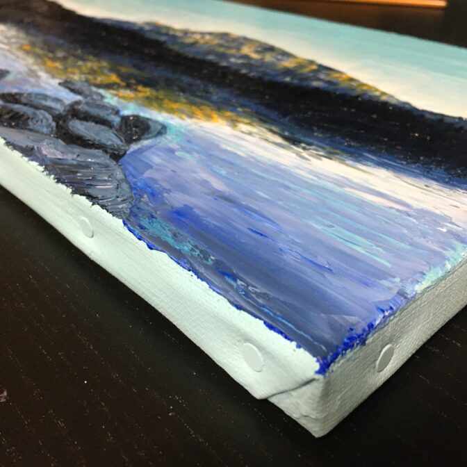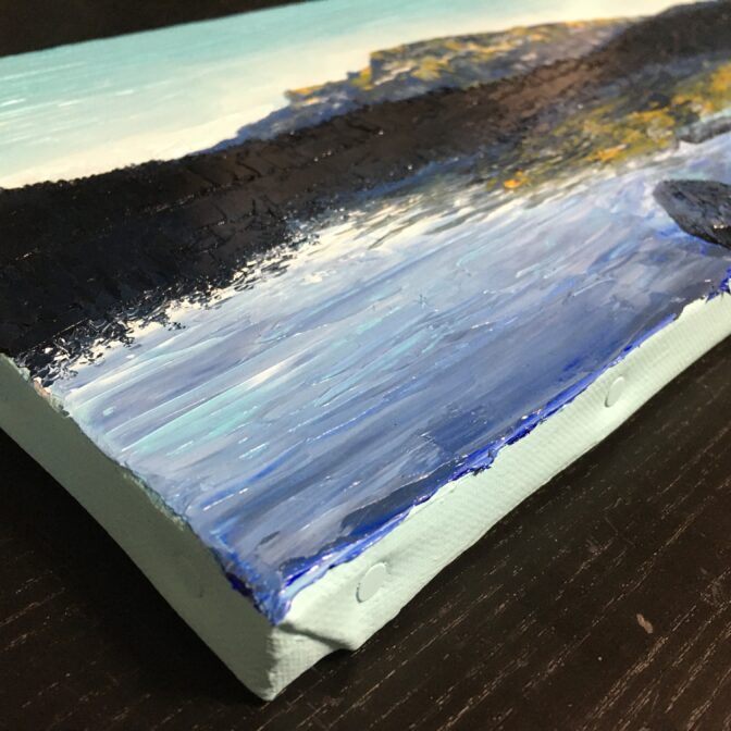 ペインティングナイフを使って制作しているため抽象的な仕上がりになっている絵です。