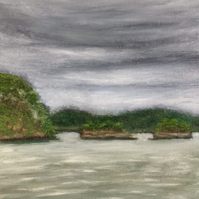あいにくの曇り空でしたが、見えた景色をそのまま絵画に表現した一枚になります。