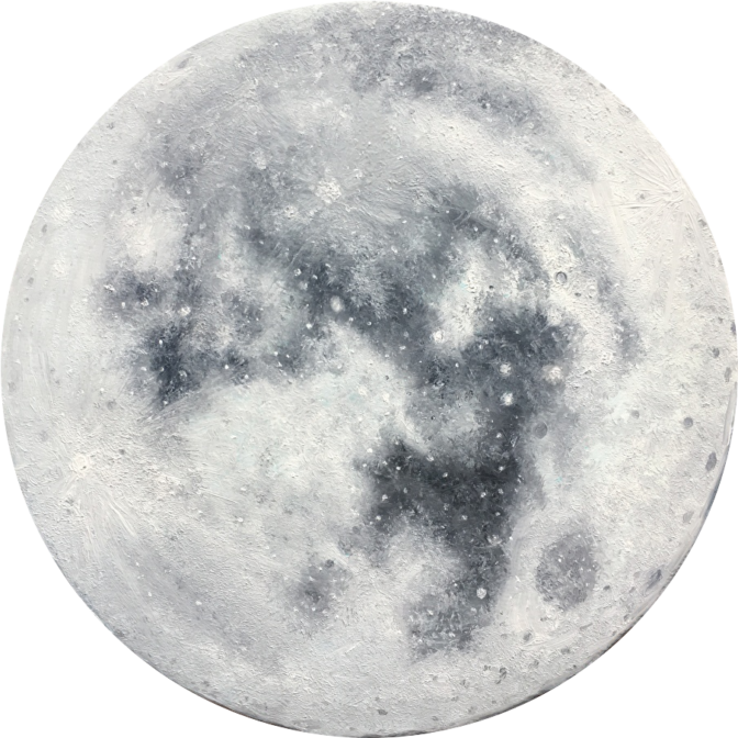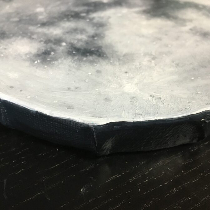 小さな丸いキャンバスに油絵の具で満月を描きました。