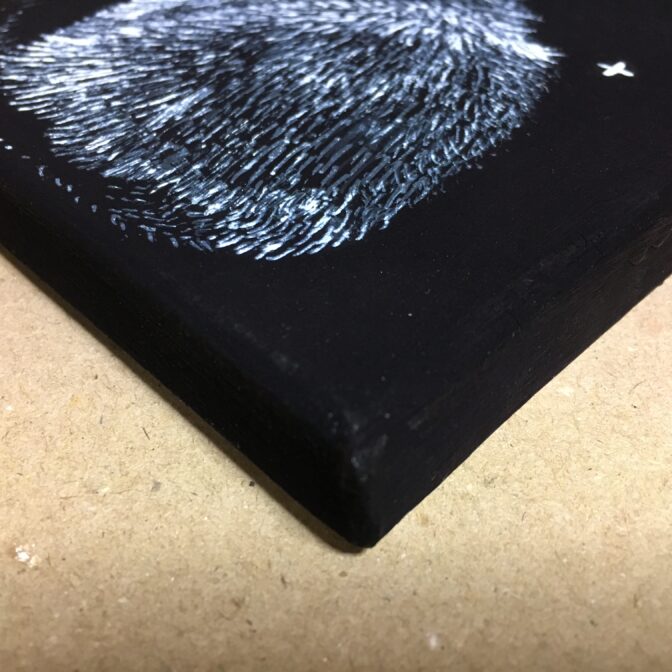 黒い下地は『ブラックホール』という超漆黒のアクリルガッシュを使っています。