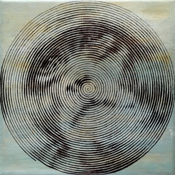 小さなキャンバスに渦巻きで日本猿を描きました。