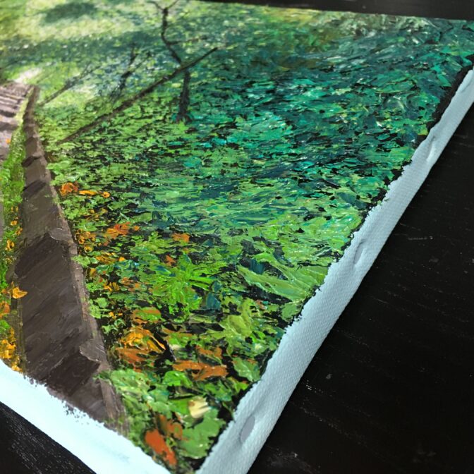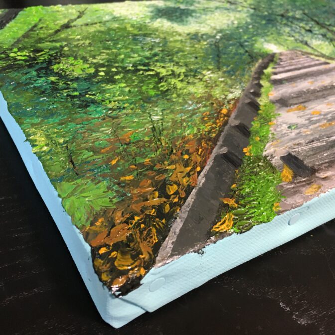 ペインティングナイフを使って制作しているため抽象的な仕上がりになっている絵です。